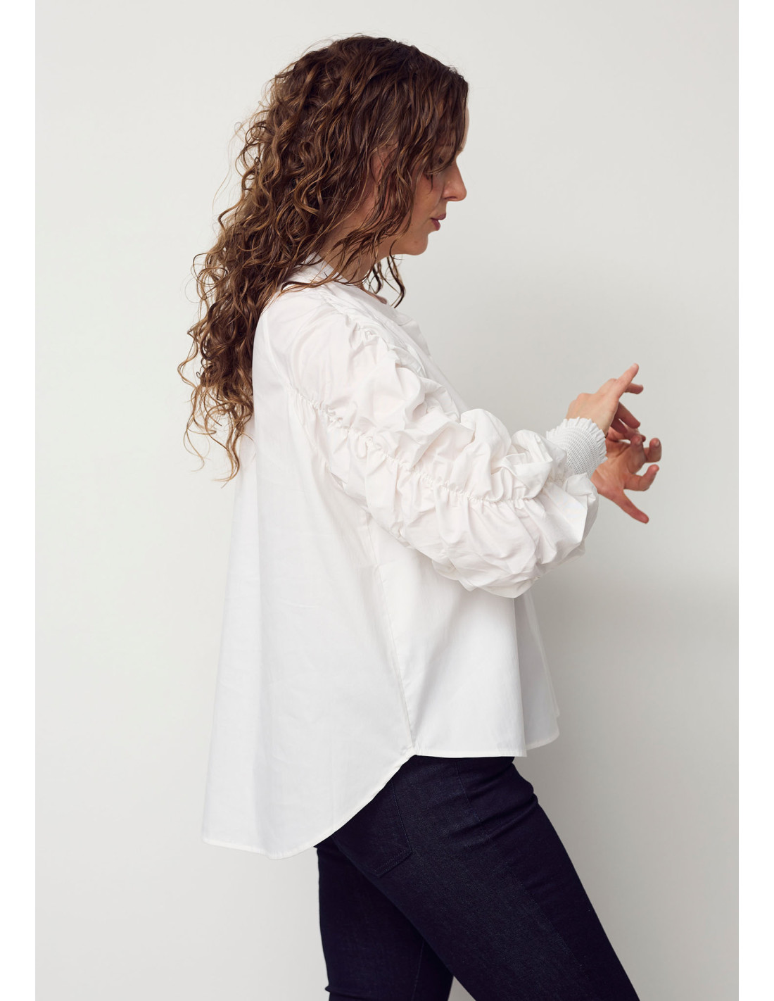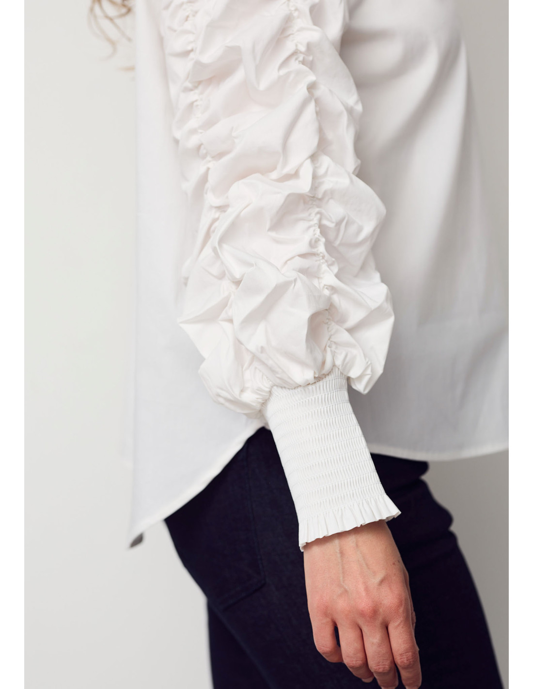 Vårt senaste tillskott till skjortfamiljen, Sigga New Shirt, är verkligen något speciellt! Med sin eleganta mandarinkrage och smarta knäppning fram, sticker den ut från mängden. Men det är inte allt - det som verkligen gör denna skjorta unik är dess långa ärmar med feminina elastiska rynkor. Dessa detaljer ger skjortan en fin touch, som verkligen utmärker den och ger den en extra touch. Baktill är den längre, vilket ger en modern och smickrande silhuett. Tillverkad av en blandning av bomull erbjuder Sigga New Shirt inte bara komfort utan också god rörelsefrihet. Det är en skjorta som inte bara är en grundläggande del utan ett statement-plagg i din garderob.