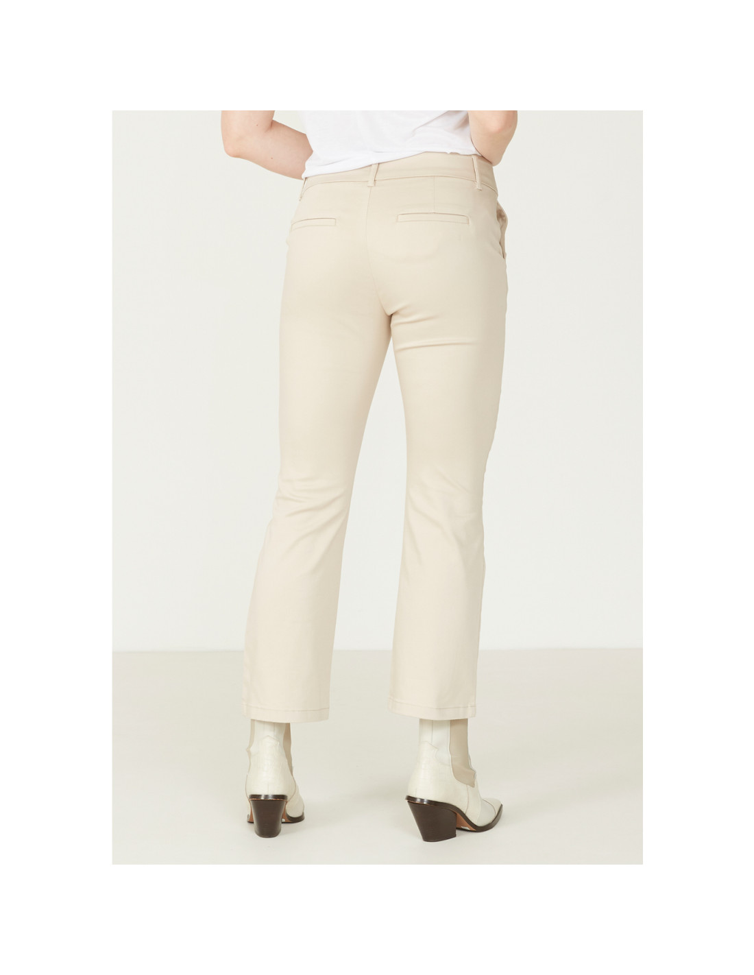 Isay Flare-byxor i en mjuk och stretchbar bomullsblandning. Byxorna är designade med en fast linning i midjan, vilket ger en smickrande passform mot kroppen och är sköna att ha på sig. Isay Flare Pant har snedställda fickor framtill och passpoalfickor baktill.