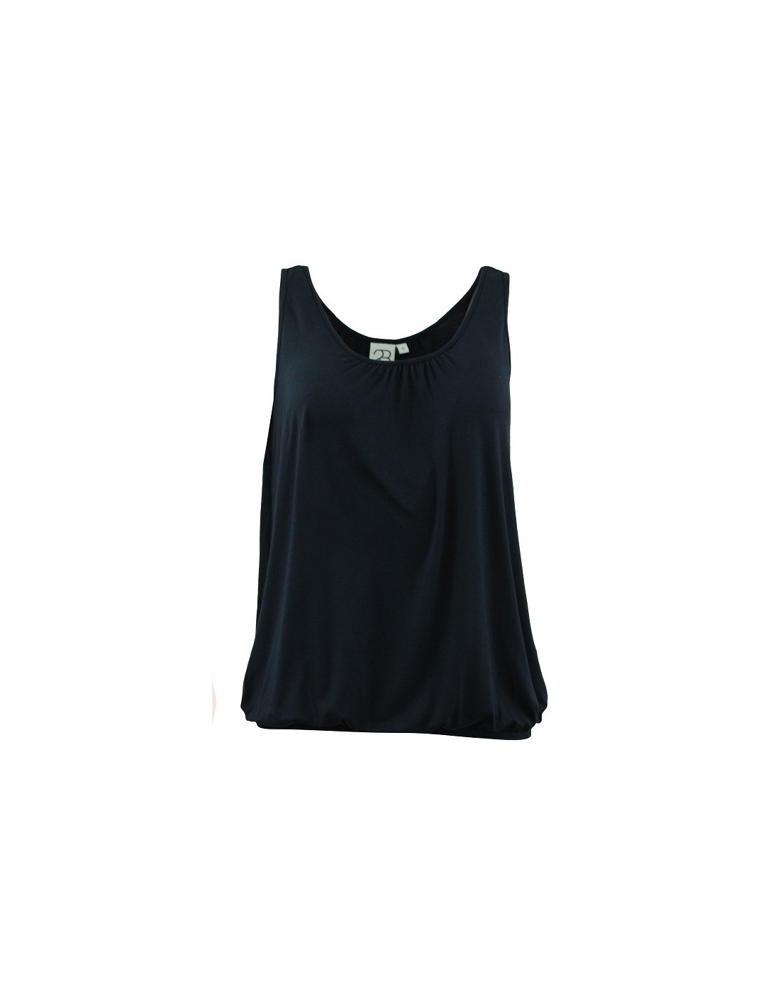 Skönt linne i lös passformt. Resår längst ned håller det på plats. Resåren gör det även lätt att blusa upp linnet för att få lite bylsigare form.
