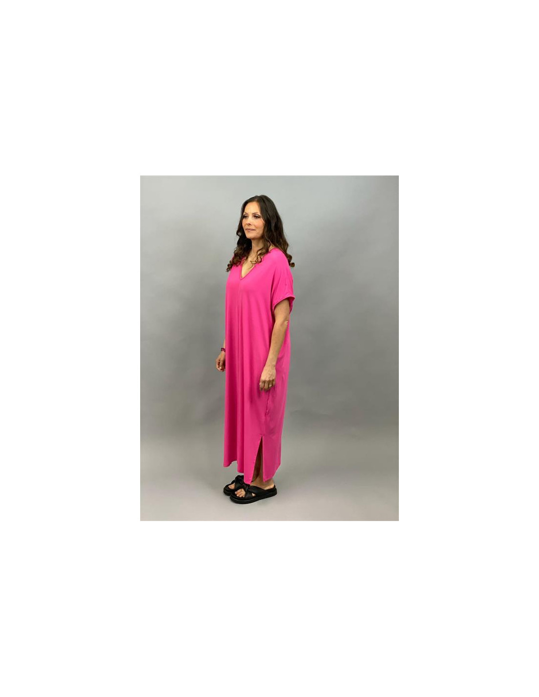 Lång viskosklänning med slits i sidorna.