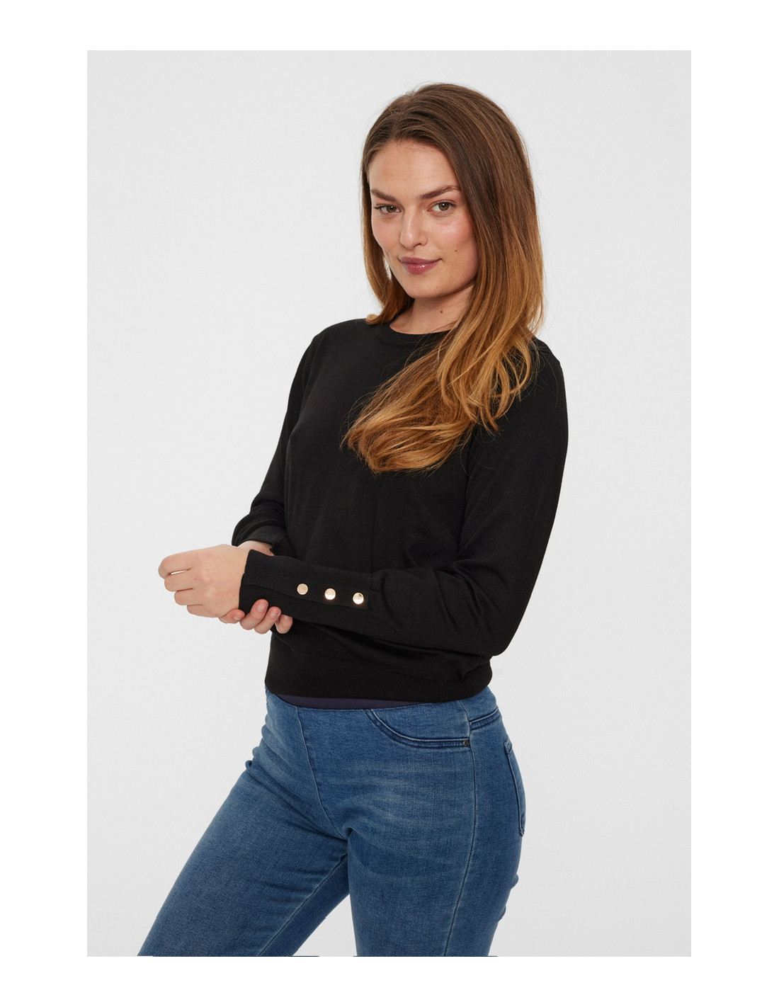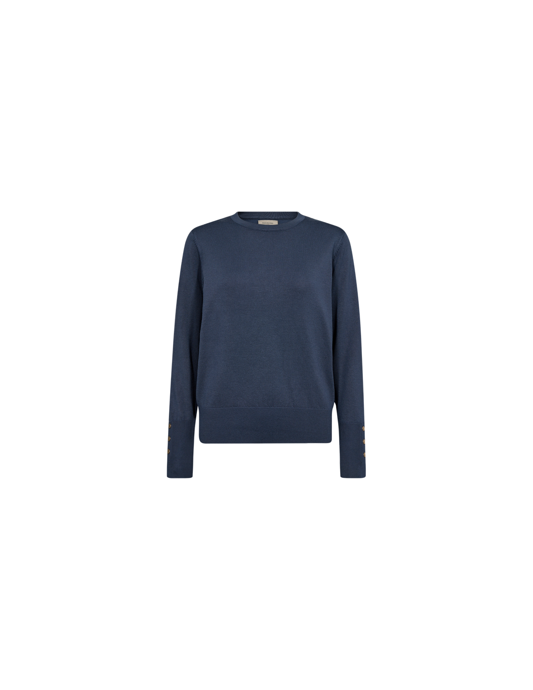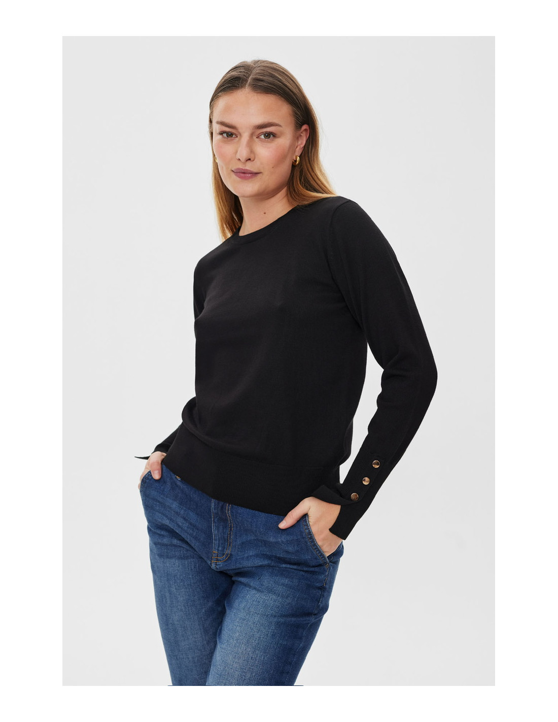 Rundhalsad tröja med snygga knappdetaljer på ärmarna.