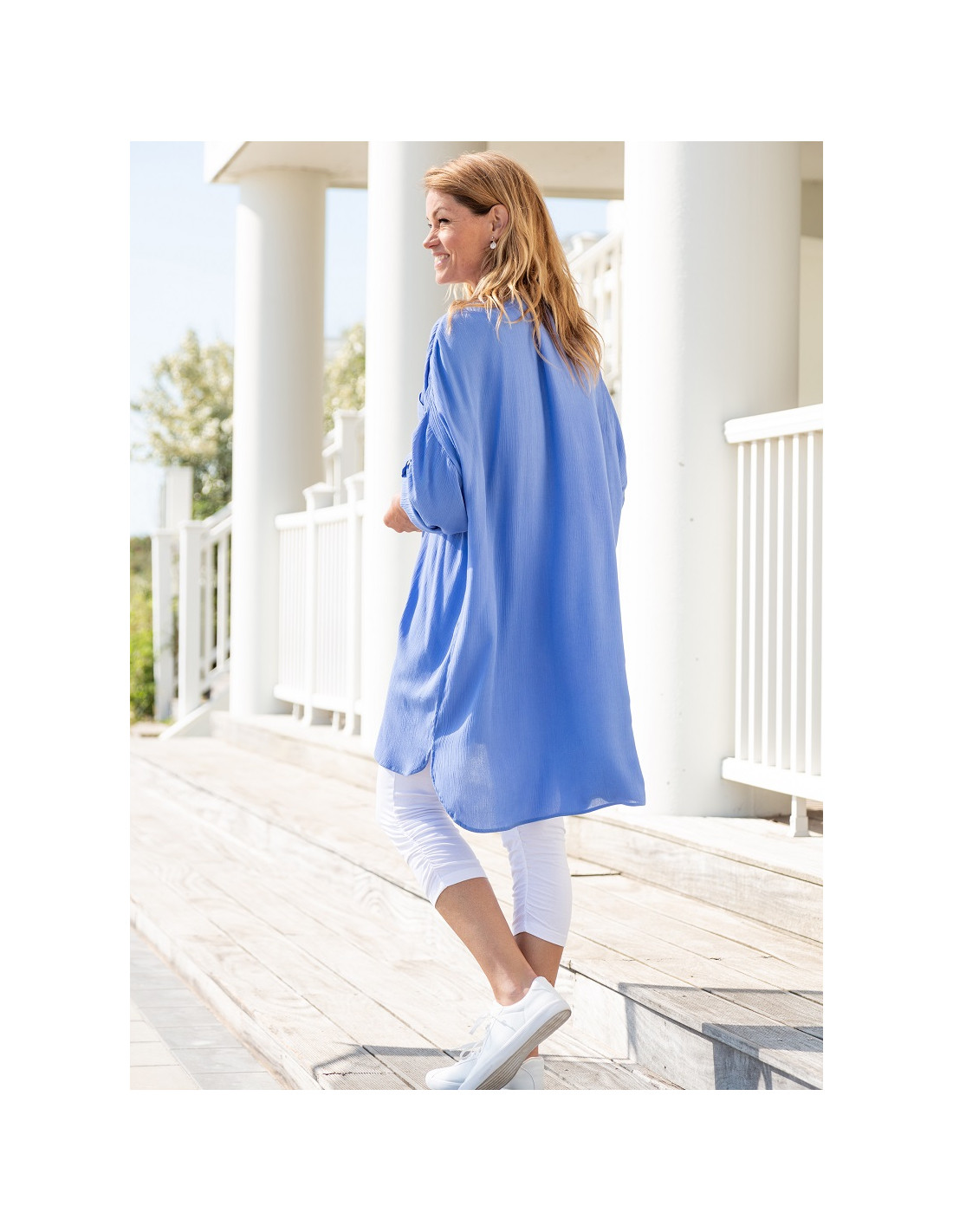Härlig skjorta i oversize-modell, skön crepeviskos. Längre bak än fram.